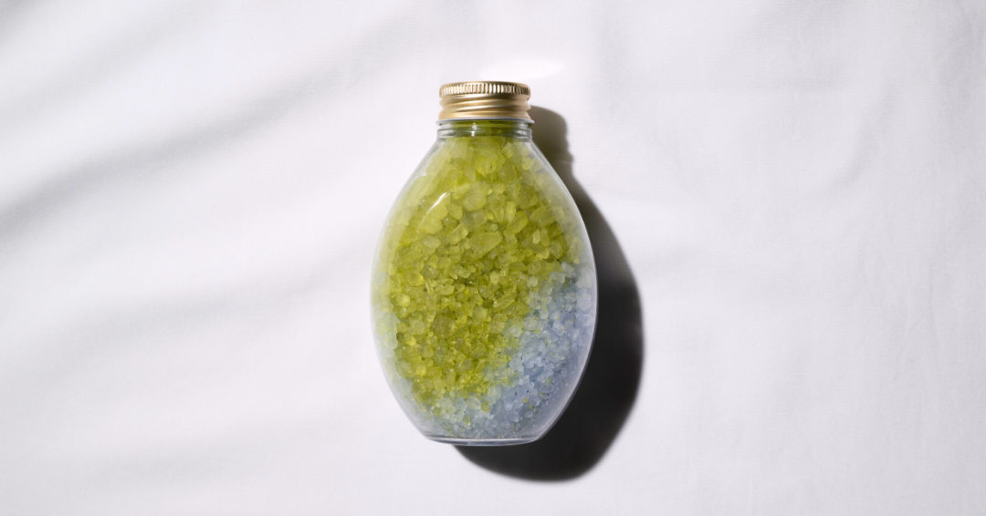 グリーンとブルーの美しい大小の粒はまるで宝石のよう。一般的に入浴剤に使用されることの多い塩化ナトリウムではなく、マグネシウム・カリウムなど海由来ミネラルを含む自然豊かなオーストラリアの海塩を使用しています。